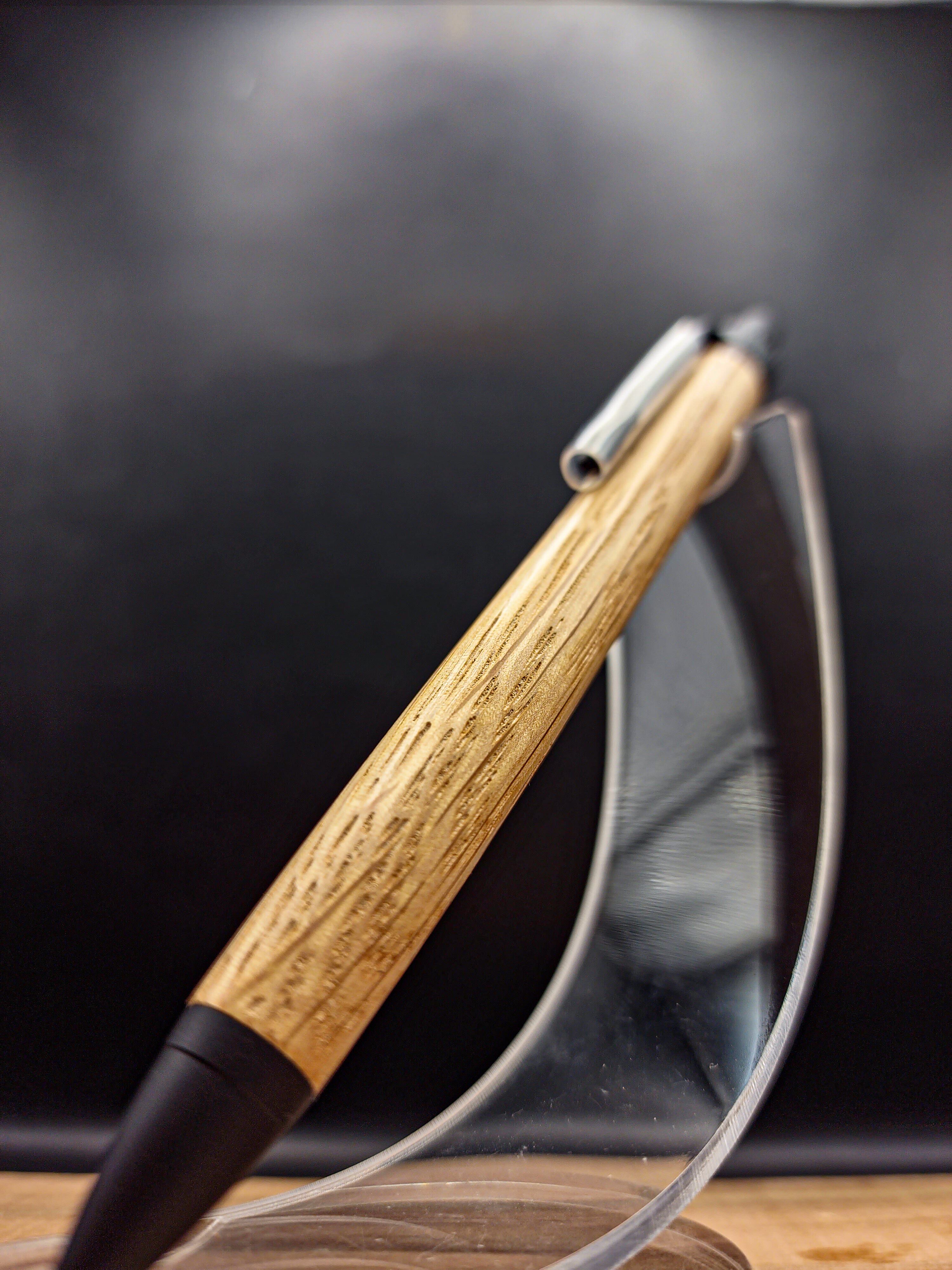 ウイスキー(ジャックダニエル)の熟成ダルとして使用されていたオーク材をペンにしました。